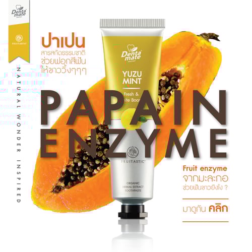 Papain enzyme ปาเปนเป็นเอนไซม์ ชนิดหนึ่ง ที่พบมากในยางมะละกอ ช่วยลดการเกิดคราบพลัคบนผิวฟัน ช่วยทำให้ฟันขาว