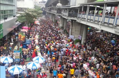 •ถนนสีลมลงจากรถไฟ (MRT) เป็นสถานที่เล่นน้ำยอดฮิตพอๆ กับถนนข้าวสารเลย ส่วนใหญ่จะเป็นคนไทยซะมากกว่า ผู้คนหนาแน่นมากถึงมากที่สุด ยิ่งเยอะยิ่งสนุกนี่นา สามารถเล่นน้ำได้ถึงตอนกลางคืน ก็จะได้อีกบรรยากาศนึง เหมาะสำหรับคนที่ไม่ชอบอากาศร้อน สายชิวๆ เดินเล่นสบายๆ