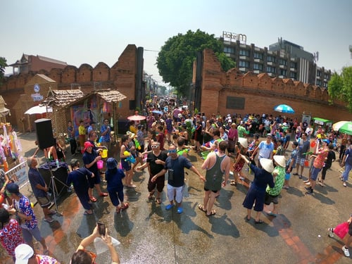 •ประตูท่าแพ | เชียงใหม่ หากใครที่มาเที่ยวในช่วงสงกรานต์ที่เชียงใหม่ ที่เล่นน้ำสงกรานต์หลัก ๆ จะอยู่ที่ ประตูท่าแพ งานสงกรานต์เมืองเชียงใหม่ หรือที่ชาวเหนือเรียกกันว่า “ป๋าเวณีปี๋ใหม่เมือง” นอกจากจะมีการเล่นน้ำกันอย่างสนุกสนาน และสวยงามตามแบบฉบับล้านนา ในปีนี้ฝุ่นในเชียงใหม่ มีค่าฝุนที่สูงมาก ใครจะไปเที่ยวดุแลตัวเองกันด้วยน้า